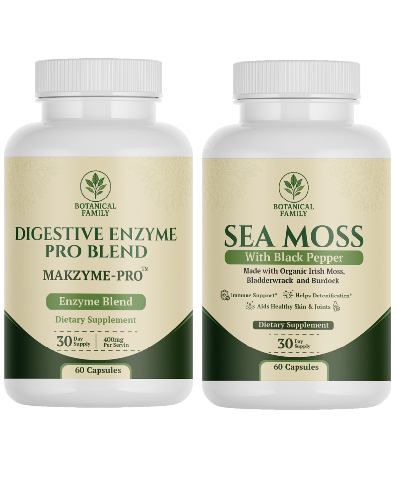 Combining Sea Moss with black pepper (BioPerine®), Bladderwrack, and Burdock Root alongside digestive enzymes creates a powerful synergy for gut health.