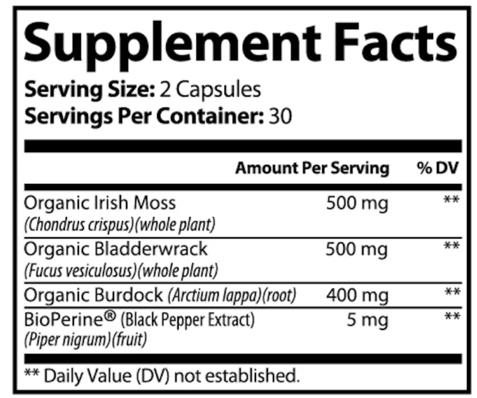 Completely impressed with these sea moss supplements. Not only does sea moss help to support your thyroid, immune system, and weight loss, it has helped with inflammation! Additionally, these contain black pepper, bladderwrack, and burdock making this a powerhouse supplement!